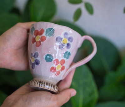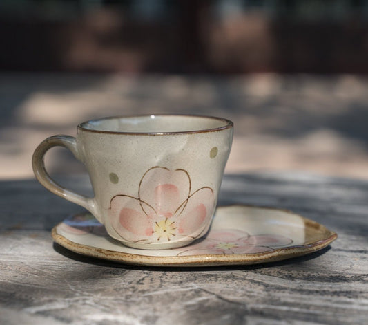 Japanese Vintage Hand-Painted Pink Sakura Coffee Cup